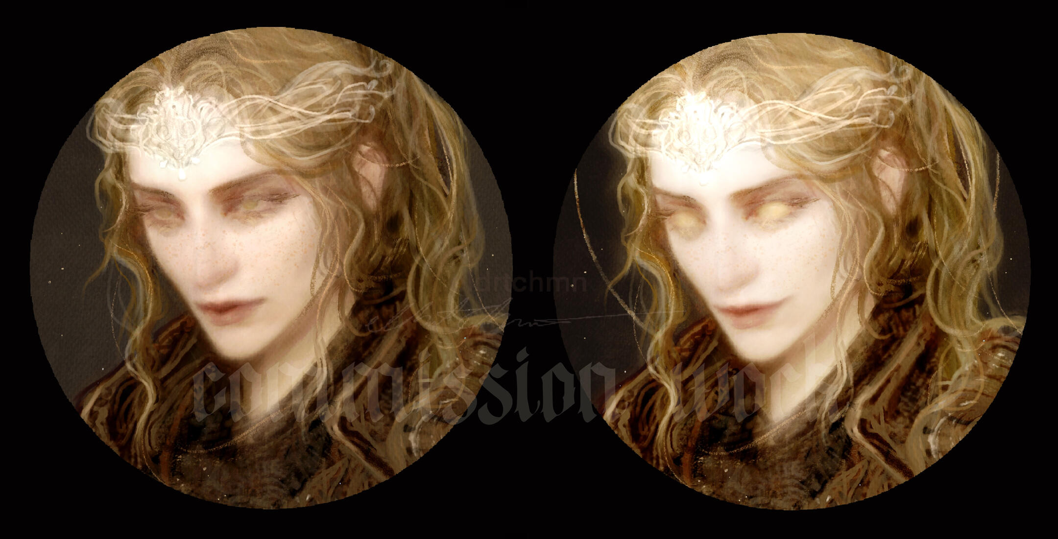 Now an adult and de jure head of the house. The family's increasingly devotion to the cult over time has made Eirika becomes a figurehead of the faith, to the joy of her family. Gains the title of Radiant Eirika due to the light and fire-based incantations she shows proficiency with. Eirika enjoys the status and following this gives her, but also feel stressed as she has no one to rely on.Is shocked to hear the news of Viveckas death from her parents, who unknown to Eirika had been disowned after being found guilty of responsibility for her lords death. Due to the stress and loneliness she faces from her positions, she creates Agnise as a separate aspect of herself in order to be able to fully disassociate from certain tasks. Over time becomes obsessed with Agni and sees her as her only friend, become unhealthily parasocially attached to her. She is able to control and influence her actions and thoughts, while Agni is unaware of this.The Sun cult gets word that Vivecka is granted grace and has headed for the Lands Between and is slighted that an apostate is held in higher regard by the Greater Will than them. Eirika feels now twice abandoned by Vivecka who sends no news. The cult leaders sends Eirika to the Lands Between as they learn that there is a struggle for the position of Elden Lord, tasking her with claiming the title.The Lands Between